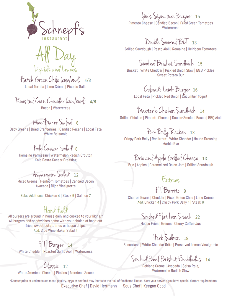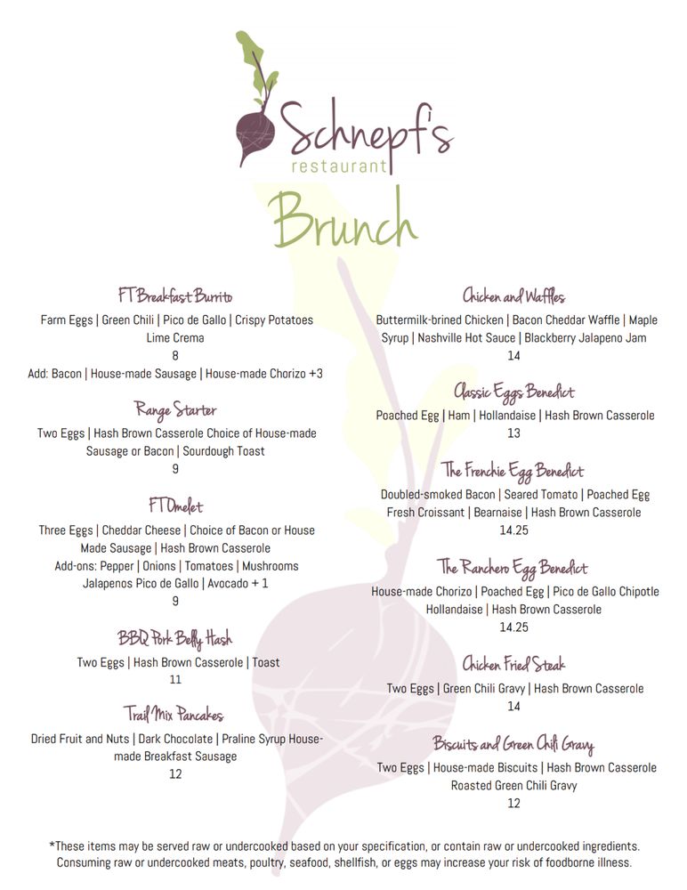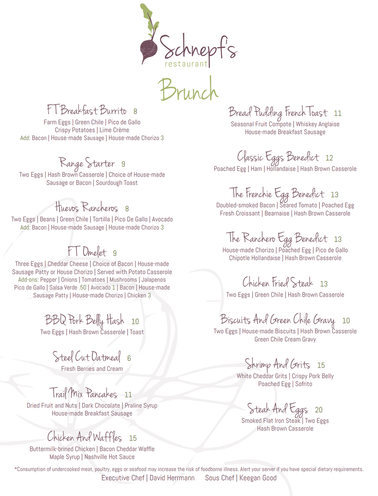 Choice of house brined chicken, crispy pork belly or picadillo. Local tortilla, crispy potatoes, avocado, Olathe corn pico, queso, house green chili and crema